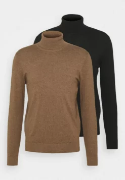 Pier One2 PACK – Stickad Tröja – Black/mottled Brown