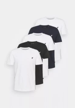 Pier One5 PACK – T-shirt – Bas – White/black/dark Blue